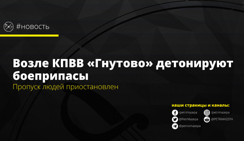 Возле КПВВ «Гнутово» детонируют боеприпасы, введен режим «красный», создается реальная опасность для жизни и здоровья гражданских. Пропуск через КПВВ остановлен.