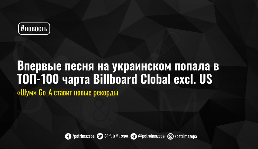 Песня «Шум» группы Go_A стала первой композицией на украинском языке, попавшей в ТОП-100 чарта Billboard Clobal excl. US.