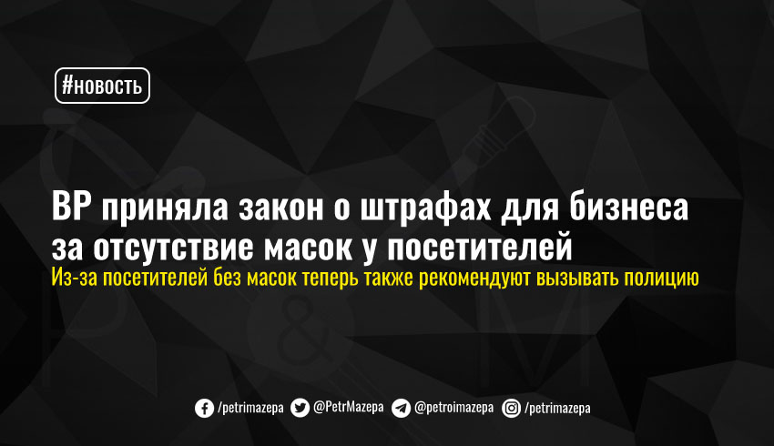 ВР приняла закон о штрафах для бизнеса за отсутствие масок у посетителей