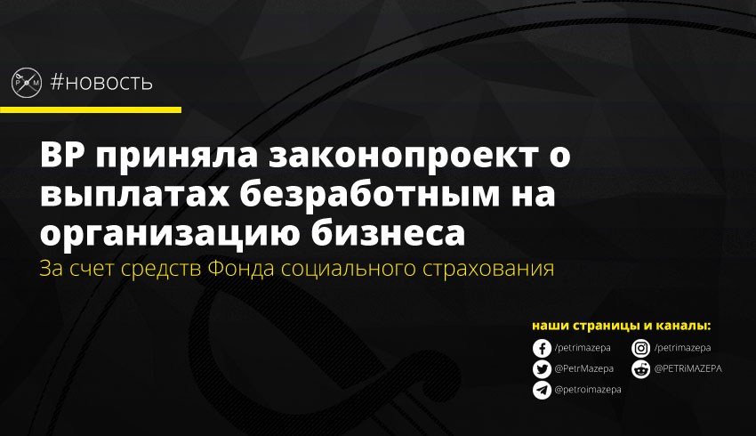 Верховная Рада приняла законопроект №3692 о внесении изменений в закон о госбюджете Украины – он предусматривает выплату безработным единовременного пособия для организации предпринимательской деятельности.