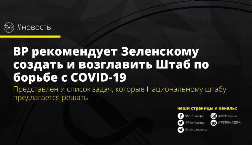 ВР рекомендует Зеленскому создать и возглавить Штаб по борьбе с COVID-19