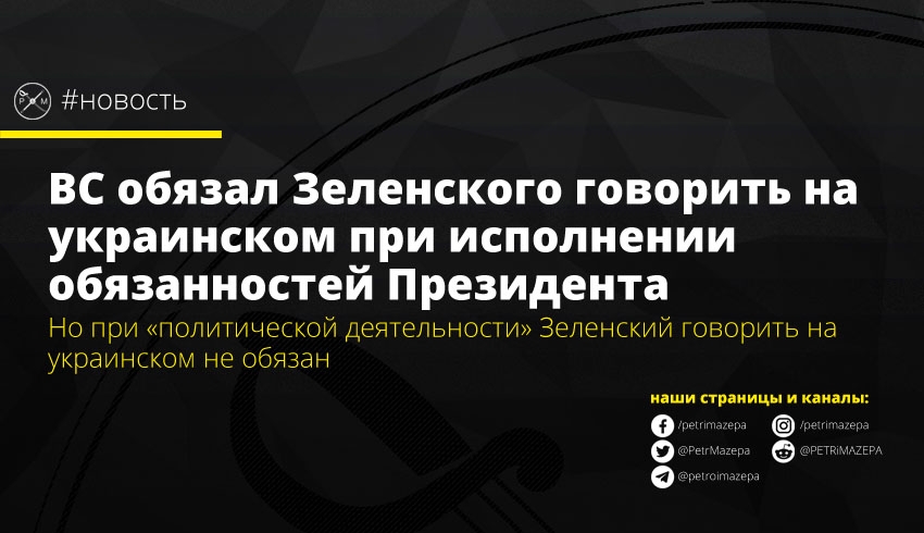 Верховный суд Украины признал, что президент Украины Владимир Зеленский обязан общаться на украинском языке во время исполнения служебных обязанностей. В то же время, он не обязан общаться на украинском языке во время политической деятельности, а не при исполнении предусмотренных Конституцией обязанностей – и несет за это только политическую ответственность.