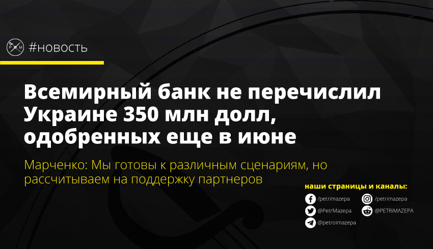 Министр финансов Сергей Марченко подтвердил, что 350 млн долл займа, которые Всемирный банк выделяет на поддержку реформ для экономического восстановления, еще не поступили в Украину. Хотя одобрена программа была еще в конце июня.