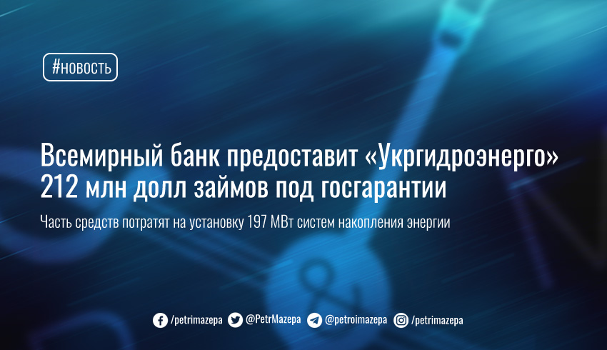 Совет директоров Всемирного банка утвердил пакет финансирования в размере 212 млн долл на реализацию проекта «Украина – Повышение стойкости энергосистемы для европейской интеграции энергосети (Установка гибридных систем по производству электроэнергии в ЧАО “Укргидроэнерго”)».