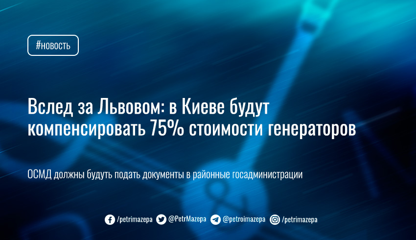 Вслед за Львовом: в Киеве будут компенсировать 75% стоимости генераторов