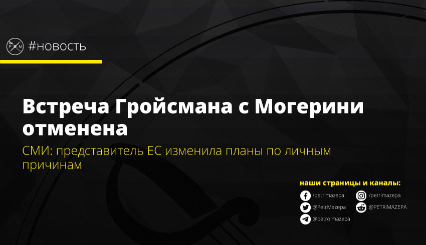 Встреча премьер-министра Украины Владимира Гройсмана и Верховного представителя Евросоюза по иностранным делам и политике безопасности Фредерики Могерини была отменена. Официальных причин отмены встречи не называют, но источники СМИ сообщают что от встречи отказалась верховный представитель ЕС по личным причинам, возможно, из-за болезни.