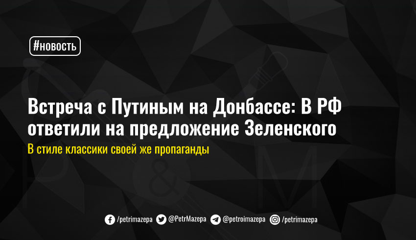В РФ отреагировали на предложение Владимира Зеленского к Владимиру Путину о встрече на украинском Донбассе – мол, предложение бессмысленно, нам не о чем говорить, и вообще РФ не сторона конфликта.