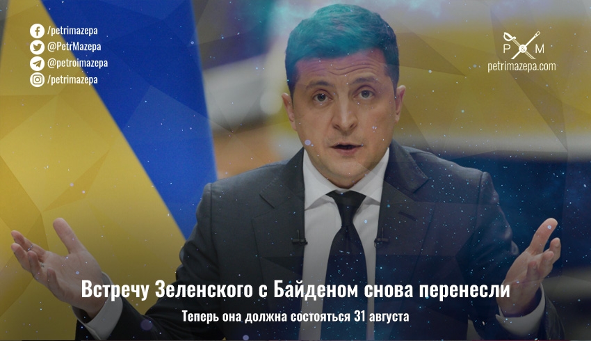 Встреча президента Украины Владимира Зеленского и президента США Джо Байдена в Вашингтоне перенесена на 31 августа.