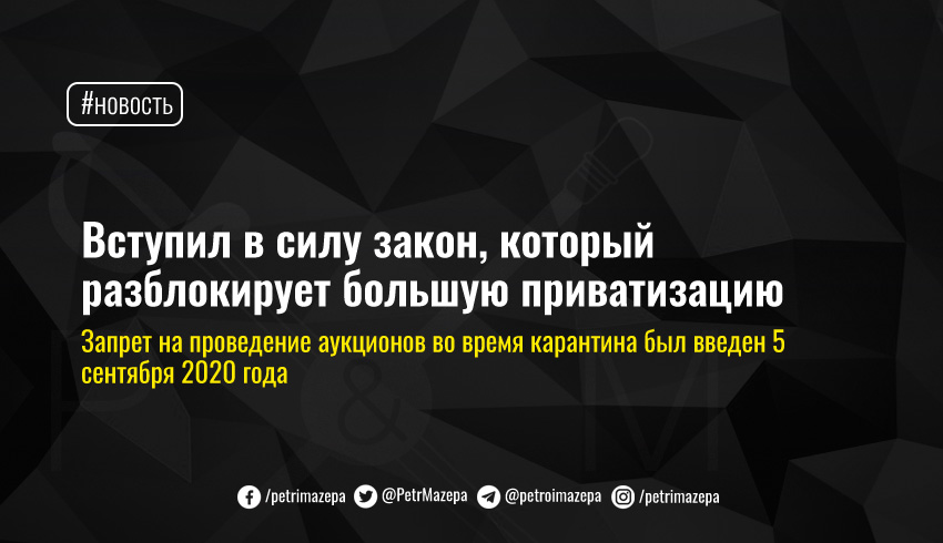 Запрет на проведение аукционов по продаже объектов большой приватизации на время карантина был введен 5 сентября. Тогда в силу вступил соответствующий закон.
