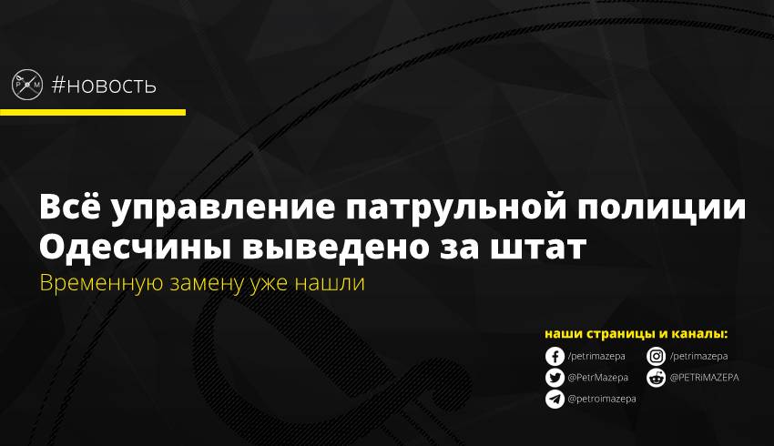 Весь личный состав управления патрульной полиции в Одесской области выведен за штат с целью предоставления им квалификационной оценки с последующей аттестацией каждого. В то же время на два месяца в подразделение откомандированы лучшие командиры из других управлений, которые будут нести службу на территории Одессы и области. Соответствующие заявления были сделаны на совещании в управлении патрульной полиции в Одесской области под председательством заместителя председателя Нацполиции Александра Фацевича.