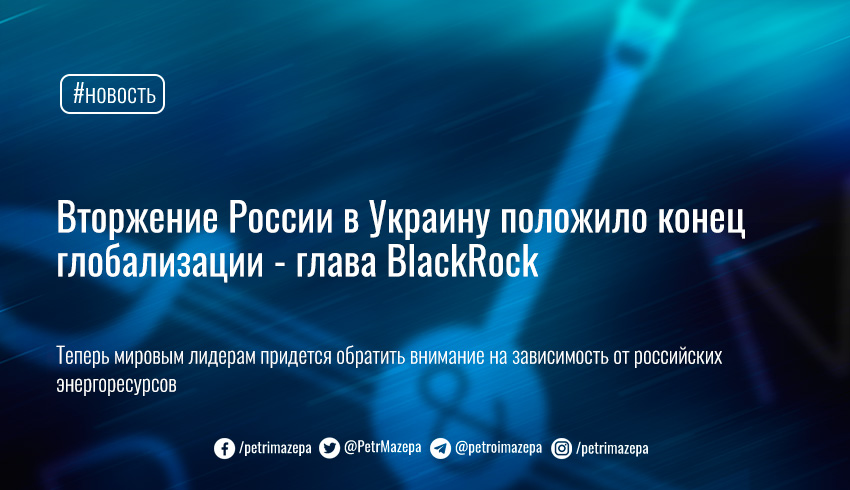 Вторжение России в Украину положило конец глобализации - глава BlackRock