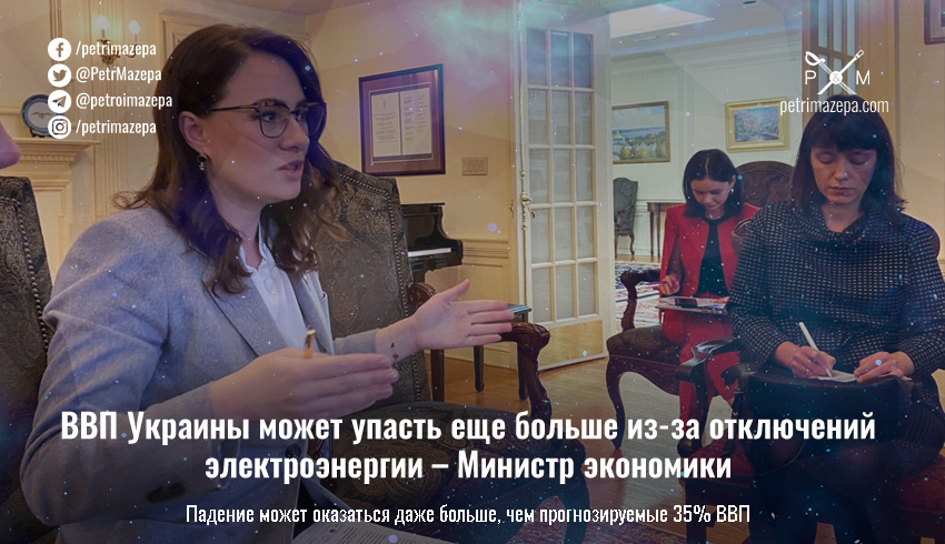 Падение ВВП Украины может оказаться даже больше прогнозируемых 35% — из-за постоянных атак россиян на нашу энергетическую инфраструктуру и отключения света. Об этом сообщила Министр экономики Украины Юлия Свириденко изданию Reuters.