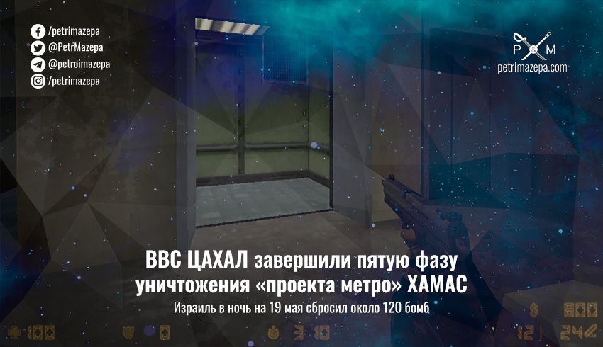 В ночь на 19 мая ВВС ЦАХАЛа продолжили наносить удары по подземным инфраструктурах в Газе. Израиль сбросил около 120 высокоточных бомб, завершил пятую фазу уничтожения подземных коммуникаций боевиков («проекта метро» ХАМАС). Также были нанесены удары по наземным целям. В СМИ сообщают, что израильская артиллерия обстреливала цели к востоку от Хан-Юнис. С палестинской стороны есть погибшие и раненые среди гражданских.