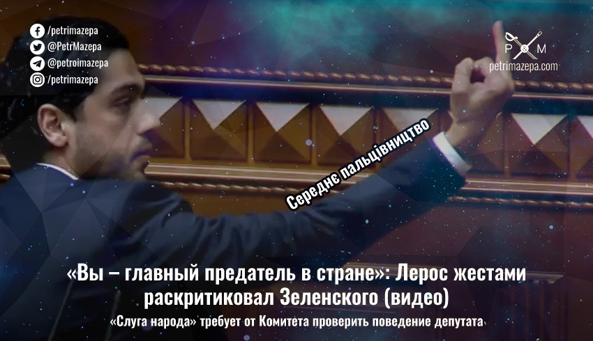 Видео выступления Лероса было обнародовано им самим в Facebook. Депутат заявил, что не будет бояться говорить правду, и что Зеленский – предатель, после чего ему по требованию спикера ВР Стефанчука отключили микрофон. Критике это не помешало – нардеп завершил выступление неприличным жестом в сторону президента.