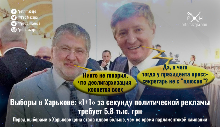 Кандидатам в мэры Харькова придется заплатить 173 тысяч гривень за полминуты политической рекламы в прайм-тайме канала олигарха Игоря Коломойского «1+1».