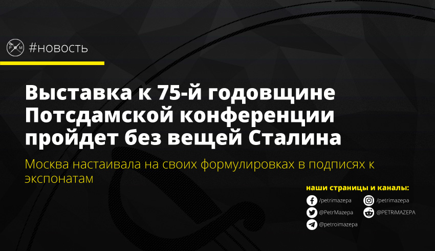 В Германии проходит выставка к 75-й годовщине Потсдамской конференции. Но, поскольку Москва захотела сопровождать российские экспонаты собственными формулировками, вещей из РФ тут не будет.