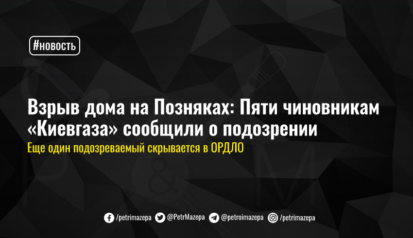 О подозрении сообщили первому замглавы правления «Киевгаза», трем главным инженерам Управлений эксплуатации газового хозяйства и начальнику службы охраны труда. В соответствии с выводами судебной экспертизы, во время осуществления сверки бытовых счетчиков в доме, где произошел взрыв, они допустили установку технологической перемычки (байпаса) вместо снятого счетчика – в результате чего и произошел взрыв, сообщает Киевская городская прокуратура в Facebook.