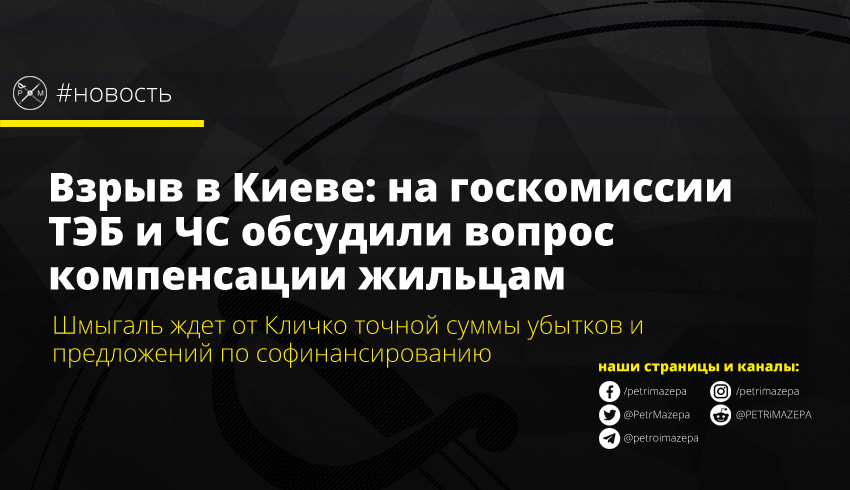 Кроме того, премьер-министр Денис Шмыгаль предложил комиссии после завершения спасательных работ оценить ущерб и провести заседание Киевской городской комиссии ТЭБ и ЧС. Именно на ней должны утвердить сумму убытков и расчета компенсации. А затем Шмыгаль ждет «четкой аргументации о возможности и необходимости применения механизма софинансирования выплат компенсации».