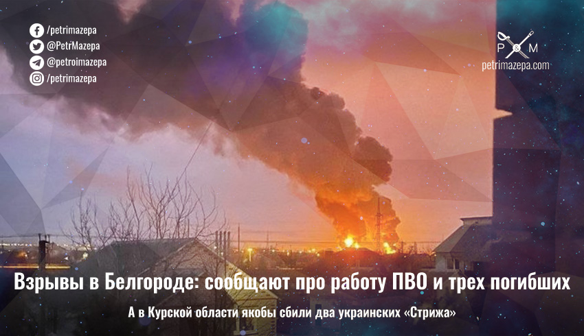 Губернатор Белгородской области РФ Вячеслав Гладков заявил, что в Белгороде была серия «громких звуков». Предположительно, сработало ПВО. Точно — погибли не менее трех россиян. Вскоре появились кадры, на которых были видны взрывы в Белгороде.