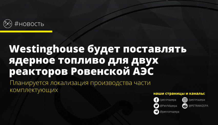 Westinghouse Electric Company и НАЭК «Энергоатом» в среду подписали контракт о поставках ядерного топлива для реакторов ВВЭР-440 Ровенской АЭС. Всего на АЭС 2 из 4 энергоблоков относятся к такому типу реакторов. Поставки планируют начать с 2024 года и тогда Westinghouse станет лидером по поставкам ядерного топлива в Украину – будет обеспечивать 8 из 15 работающих энергоблоков «Энергоатома».