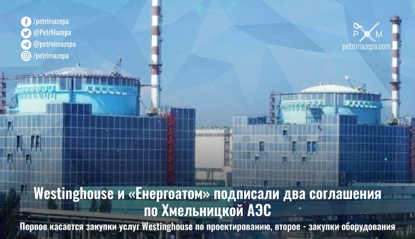 Государственная компания «Енергоатом» и американская фирма Westinghouse подписали два соглашения, касающиеся строительства двух энергоблоков на Хмельницкой АЭС по технологии АР1000. «Енергоатом» уточняет, что первое соглашение касается закупки услуг американской компании по проектированию энергоблоков, второе - закупки тренажера и оборудования с длительным сроком эксплуатации.