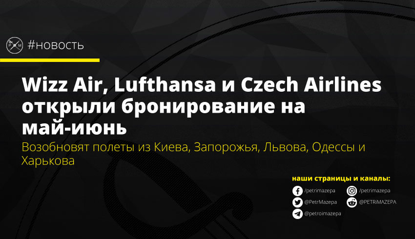 Wizz Аir, Lufthansa и Czech Airlines открыли бронирование на май-июнь