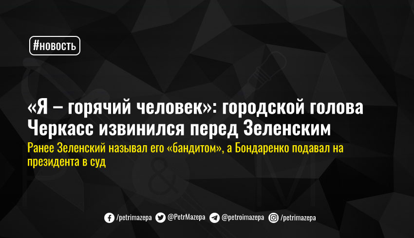 Городской голова Черкасс Анатолий Бондаренко, которого недавно переизбрали на еще один срок, публично извинился перед президентом Зеленским, с которым у него летом был конфликт. Теперь Бондаренко заявляет, что он «горячий человек», хочет публично принести свои извинения Владимиру Зеленскому, и поясняет, почему в его команду вошел представитель президентской фракции.