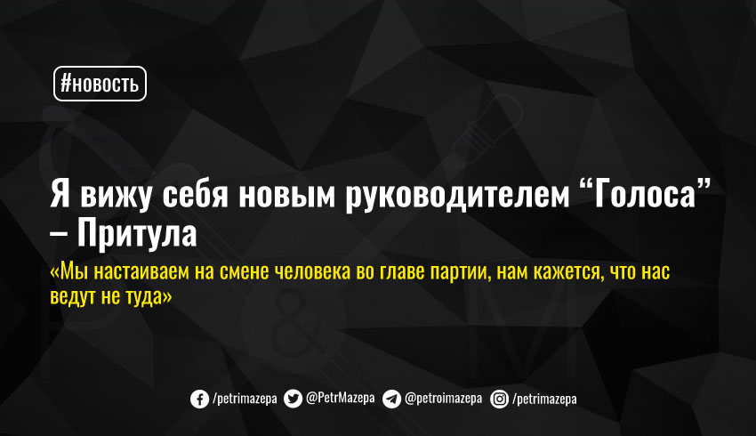 Член партии «Голос», шоумен Сергей Притула заявил, что готов сменить Киру Рудик во главе партии. Он считает, что партия отошла от тех принципов, на которых она изначально строилась, и что руководство партии надо менять.