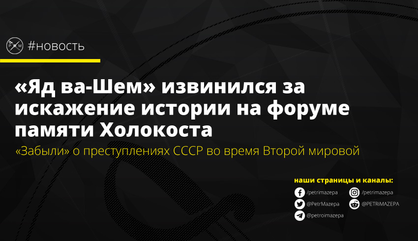 Израильский мемориальный центр «Яд ва-Шем» принес извинения за то, что материалы, представленные на Всемирном форуме памяти Холокоста, искажали исторические факты о роли СССР во Второй мировой войне.