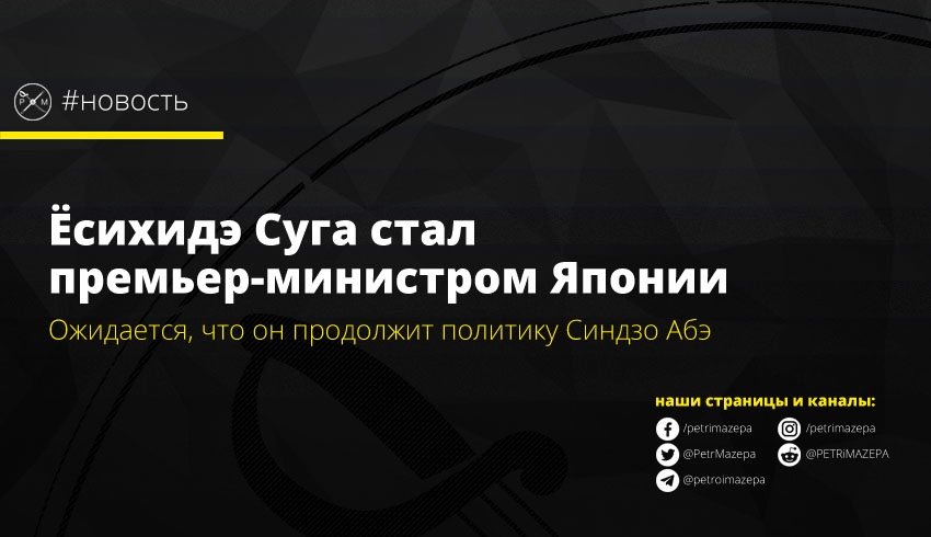 Парламент Японии поддержал кандидатуру Ёсихидэ Суга на должность премьер-министра Японии. Ожидается, что он продолжит политику своего предшественника и близкого соратника Синдзо Абэ.
