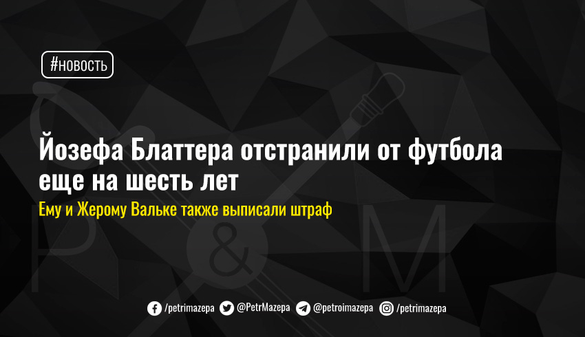 «Блаттеру и Вальке запрещена любая деятельность, связанная с футболом (административная, спортивная или любая другая), как на национальном, так и на международном уровнях», - гласит заявление.