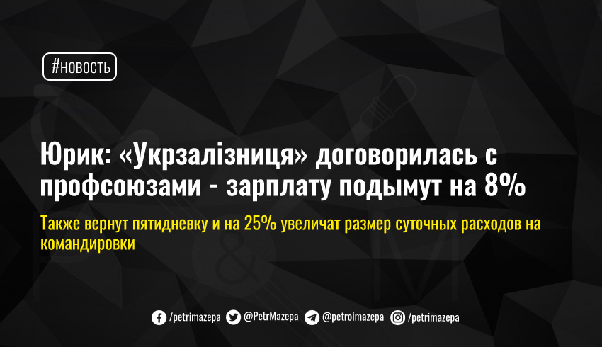 Юрик: «Укрзалізниця» договорилась с профсоюзами - зарплату подымут на 8%