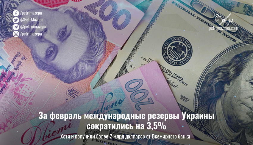За месяц чистая продажа валюты НБУ составила 2 млрд 452 млн долларов, что на 609 млн долларов меньше, чем в январе. Второй фактор — поступления в пользу правительства и выплаты за обслуживание и погашение государственного долга. На это ушло еще 570 млн долларов. И еще 306 млн долларов отдали МВФ.