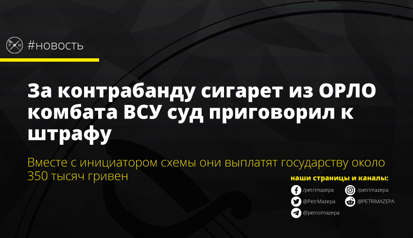 Суд постановил взыскать с командира 8-го батальона 10-й горно-штурмовой бригады ВСУ, подполковника Дмитрия Лысюка штраф в размере 119 тысячи гривен. Инициатор схемы, цивильный житель Краматорска, должен будет выплатить более 161 тысячи гривен штрафа. Их признали виновными в незаконном перемещении и продаже сигарет из ОРЛО, передают «Українськi Новини» со ссылкой на текст приговора.