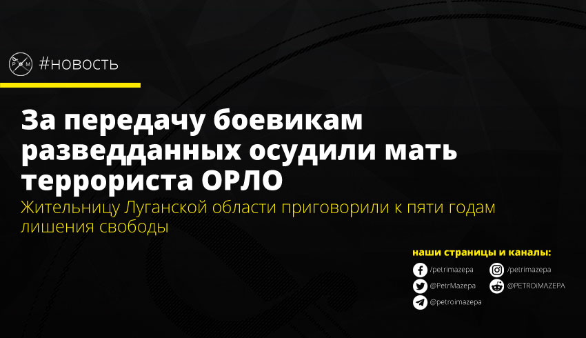 «На судебном заседании прокуратурой было доказано, что с февраля по март 2017 года 63-летняя женщина, находясь на подконтрольной украинской власти территории Луганской области, передавала разведывательные данные военного характера своему сыну – боевику “13-го батальона территориальной обороны 2-й бригады 2-го армейского корпуса” “Народной милиции ЛНР” оккупационной администрации Российской федерации», - сообщает прокуратура Луганской области.