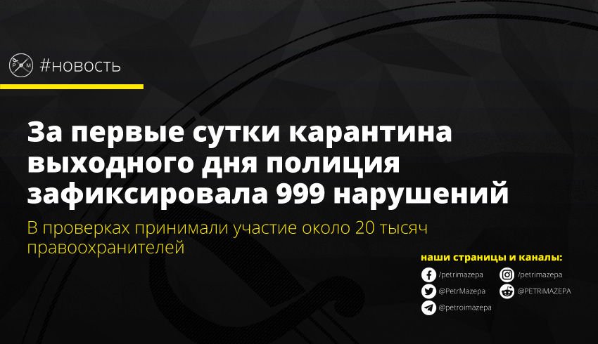 За первые сутки карантина выходного дня полиция зафиксировала 999 нарушений