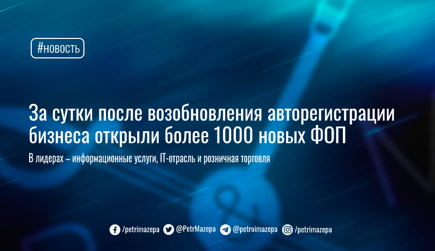 За сутки после возобновления авторегистрации бизнеса открыли более 1000 новых ФОП