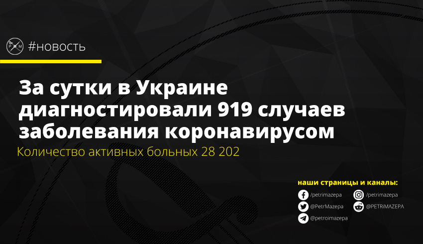 За сутки в Украине диагностировали 919 случаев заболевания коронавирусом