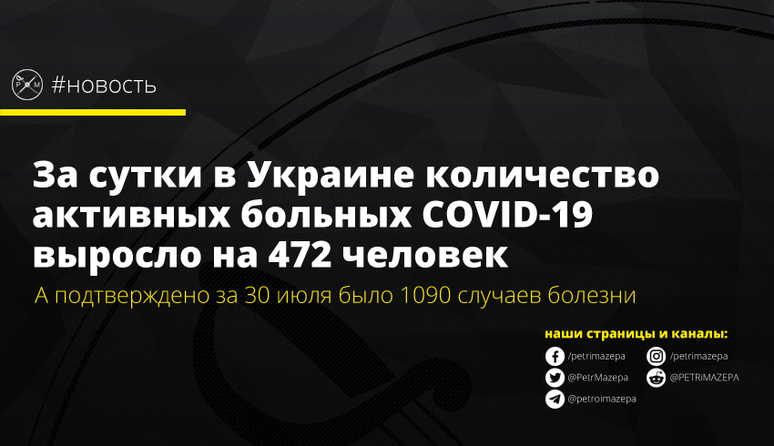 За 30 июля в Украине COVID-19 обнаружили у 1090 человек. Общее количество подтвержденных случаев достигло 69 884 с начала пандемии. Из них 38 752 выздоровели (+598 за прошедшие сутки), а умерли от осложнений 1693 (+20). Количество активных больных, таким образом, увеличилось на 472 и достигло до 29 439 пациентов.