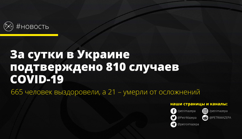 За сутки в Украине подтверждено 810 случаев COVID-19