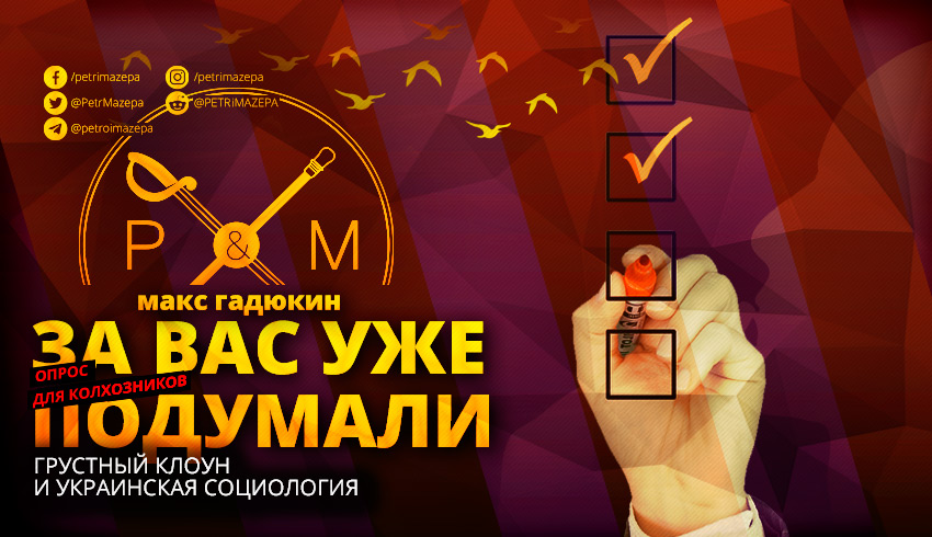 Украинская беспощадная социология в этом году заслужила звание Нострадамуса и раскрыла своё предназначение. Нужна она одному человеку, хотя именно нам пытаются вживить этот плод альтернативной реальности. Будто просмотр порно на стройке: понимаешь суть, но обстановка совершенно не подходит.