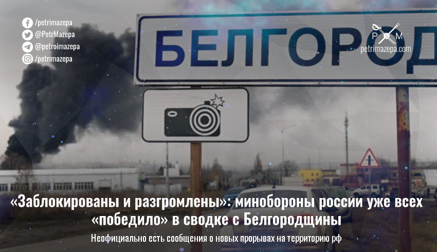 Россияне в официальном комментарии не смогли опровергнуть бои в Белгородской области. Но они, конечно, утверждают, что всех уже «заблокировали и разгромили», а затем «отбросили на территорию Украины», где разгромили и уничтожили еще раз.
