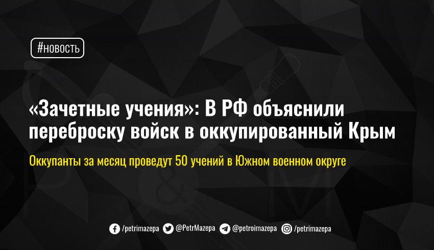 Минобороны Российской Федерации начало проведение серии военных учений в Южном военном округе, куда страна-агрессор записывает и оккупированный Крым. В течение апреля оккупанты планируют провести «более 50 зачетных учений».