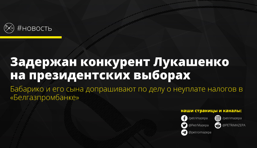 Белорусского банкира Виктора Бабарико, потенциального конкурента Александра Лукашенко на выборах президента, задержали и доставили на допрос.
