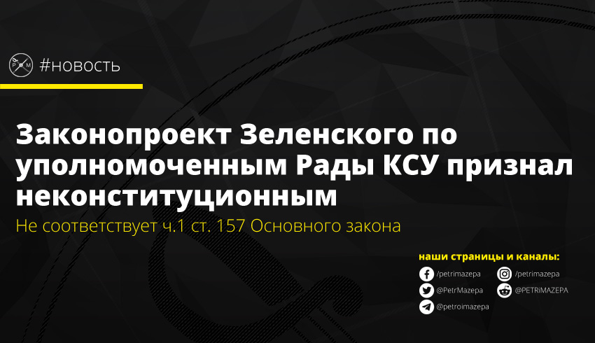 Конституционный суд (КСУ) признал законопроект № 1016 президента Владимира Зеленского по уполномоченным Верховной Рады таким, что не соответствует требованиям ч. 1 статьи 157 Основного закона. Суд счел расширение полномочий парламента необоснованным.