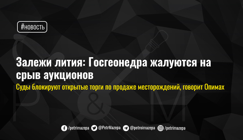 «Мы подготовили два литиевых объекта на аукционы. К сожалению, через суды блокируются открытые торги с расчетом получить спецразрешения без проведения аукциона», - указывает глава Госгеонедр Роман Опимах.