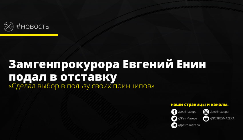 Заместитель генерального прокурора Украины Евгений Енин подал в отставку. Он пояснил свое решение тем, что это выбор в пользу своих принципов, и поблагодарил всех за поддержку и жизненные уроки.