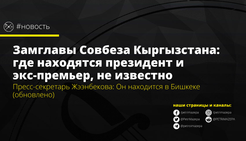 Он также сообщил что ни президент, ни премьер-министр не появлялись на публике с начала протестов, и хотя Жээнбеков записал несколько обращений, где именно они были записаны, не известно.