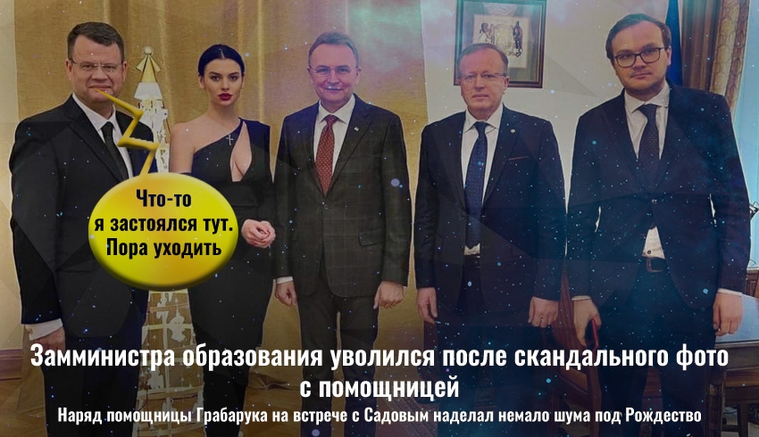 Заместитель министра образования Игорь Гарбарук уволился после скандального фото с помощницей во время визита во Львов. Фото 27-летней Кристины Тишкун, посетившей встречу с городским головой Львова Андреем Садовым в откровенном наряде, привлекло немало внимания на выходных.