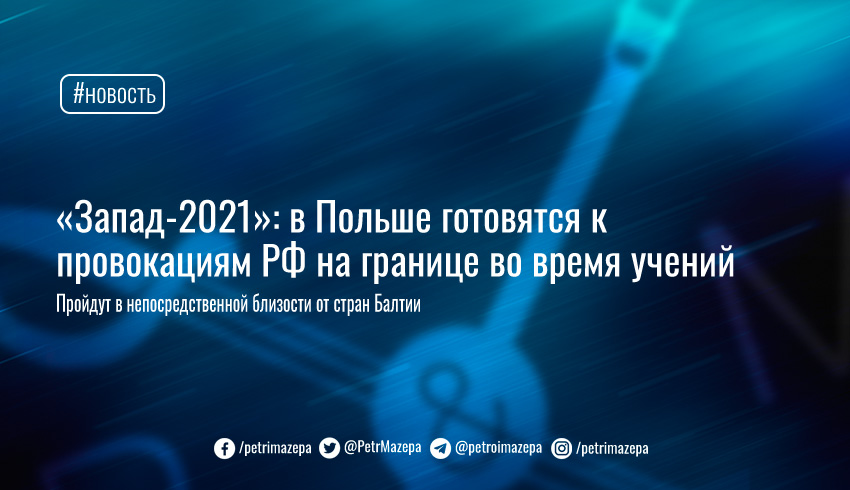 В сентябре 2021 года на территории Беларуси пройдут масштабные совместные российско-белорусские военные учения «Запад-2021». В Польше готовятся к провокациям РФ во время военных учений, которые пройдут в непосредственной близости от стран Балтии.